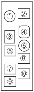 | (2)、(5)、(7)~(10) 縦21.5㎜ × 横25.5㎜ | ||