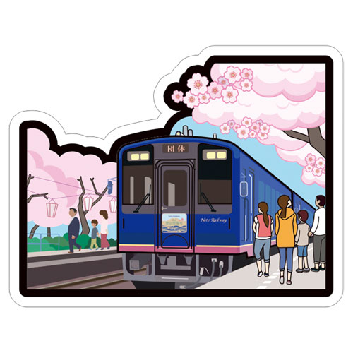 | <鉄道>フォルムカードセット「日本の旅」第2弾Bセットの内の1種。発行:2017年2月3日、取扱郵便局:全国の郵便局(約300局:一部の簡易郵便局は除く)。モチーフはのと鉄道と桜と能登鹿島駅(石川県)。 |