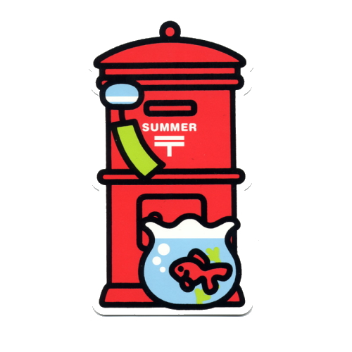 | 昔懐かしい丸型ポストにきんぎょとアサガオがあしらわれた、季節の郵便ポスト型はがき(2015年夏バージョン)。 発行:2015年6月1日〜9月30日。 |