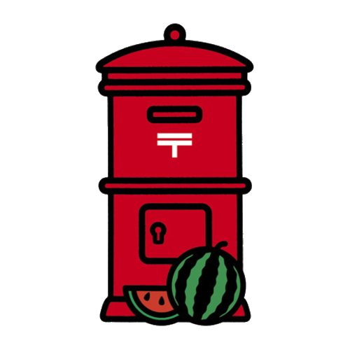 | 昔懐かしい丸型1号ポストにスイカがあしわられた、季節の郵便ポスト型はがき(夏バージョン)。 |