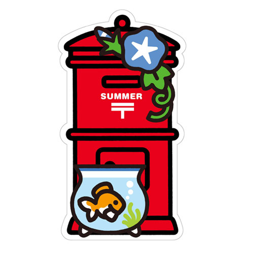 | 昔懐かしい丸型ポストにきんぎょとアサガオがあしらわれた、季節の郵便ポスト型はがき(2015年夏バージョン)。 発行:2015年6月1日〜9月30日。 |