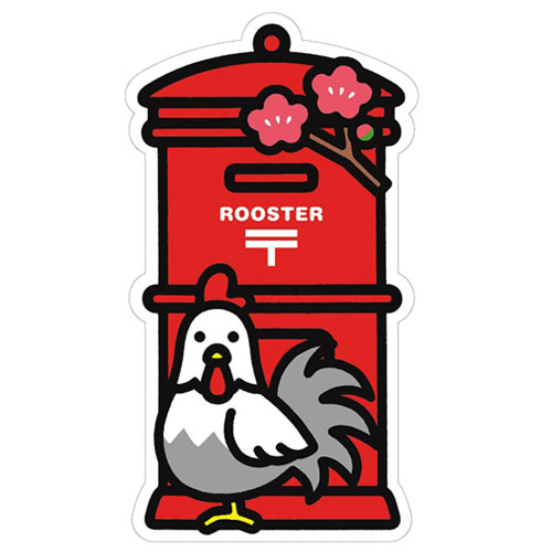 | 丸型ポストに2017年の干支である「酉」にちなみにわとりがあしらわれた、干支の郵便ポスト型はがき(とりバージョン)。発行:2016年11月2日〜2017年2月28日(商品がなくなり次第終了)。 |